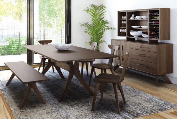 The Audrey Dining Room is crafted in solid American black walnut and Made to Order in natural finish. Audrey Dining also crafted in solid cherry in several finishes. Walnut dining items are finished with a low sheen (10 sheen) top coat. The finish is GREENGUARD Certified for low chemical emissions.