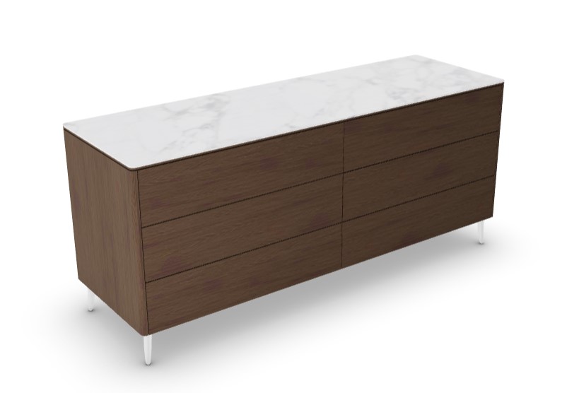BOSTON is a drawer chest featuring a sleek modern design. The handleless drawers open with the push-pull system and are equipped with a soft close mechanism. The feet are available in wood with matching finish, or in aluminium.