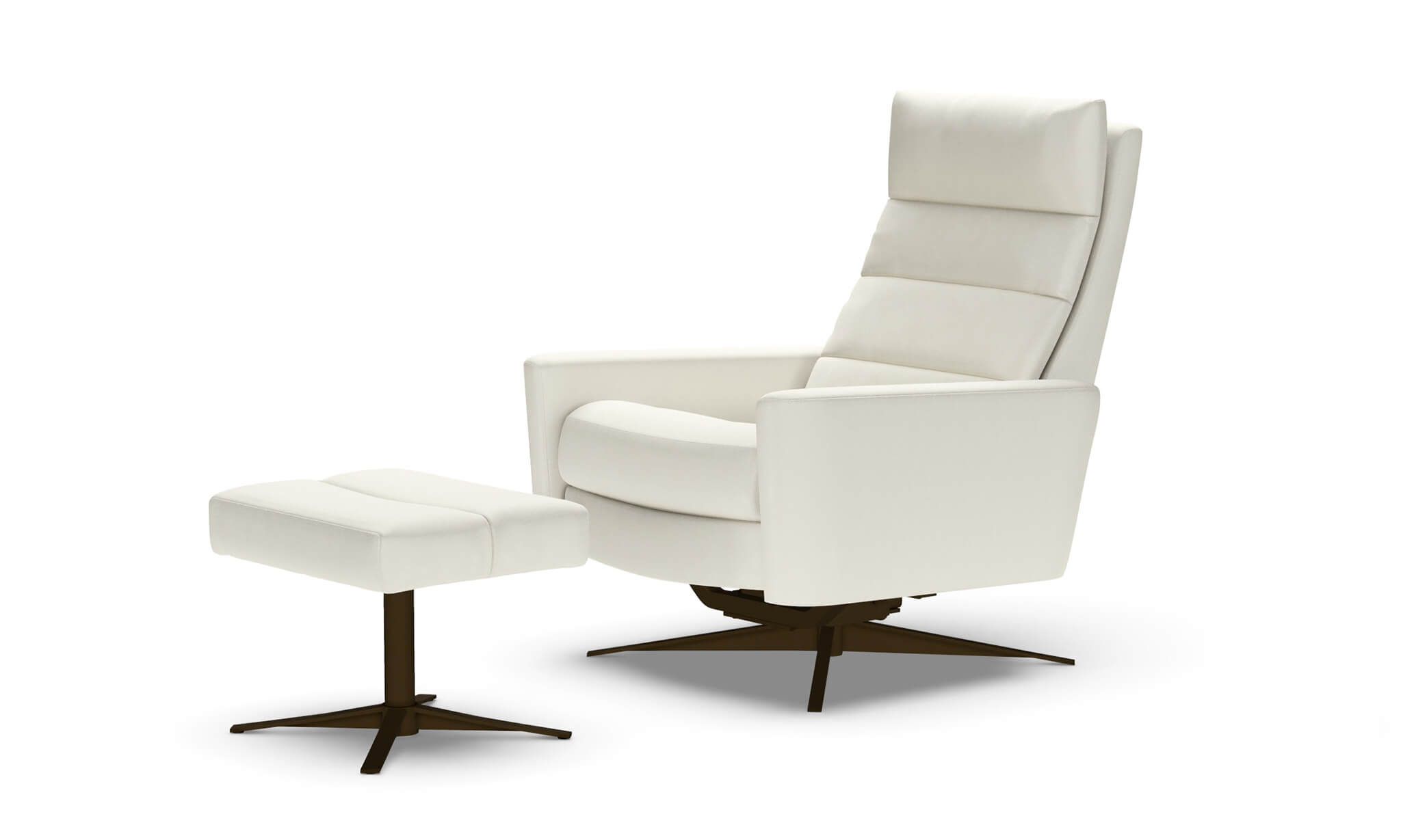 A plush, channeled back and seat cushion encased in down provides instant comfort. The Cirrus is available in three sizes, custom engineered to fit every body type. Choose from a sleek four star base available in Antique Brass, Burnished Bronze, or Polished Nickel, or a disc base in Polished Nickel or Natural Walnut.