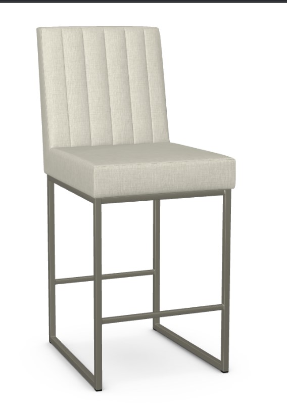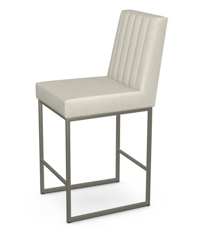 The Darcy features an elegant sled base and vertical channels on the its back. Made to order in Canada with many fabric and metal finish options.