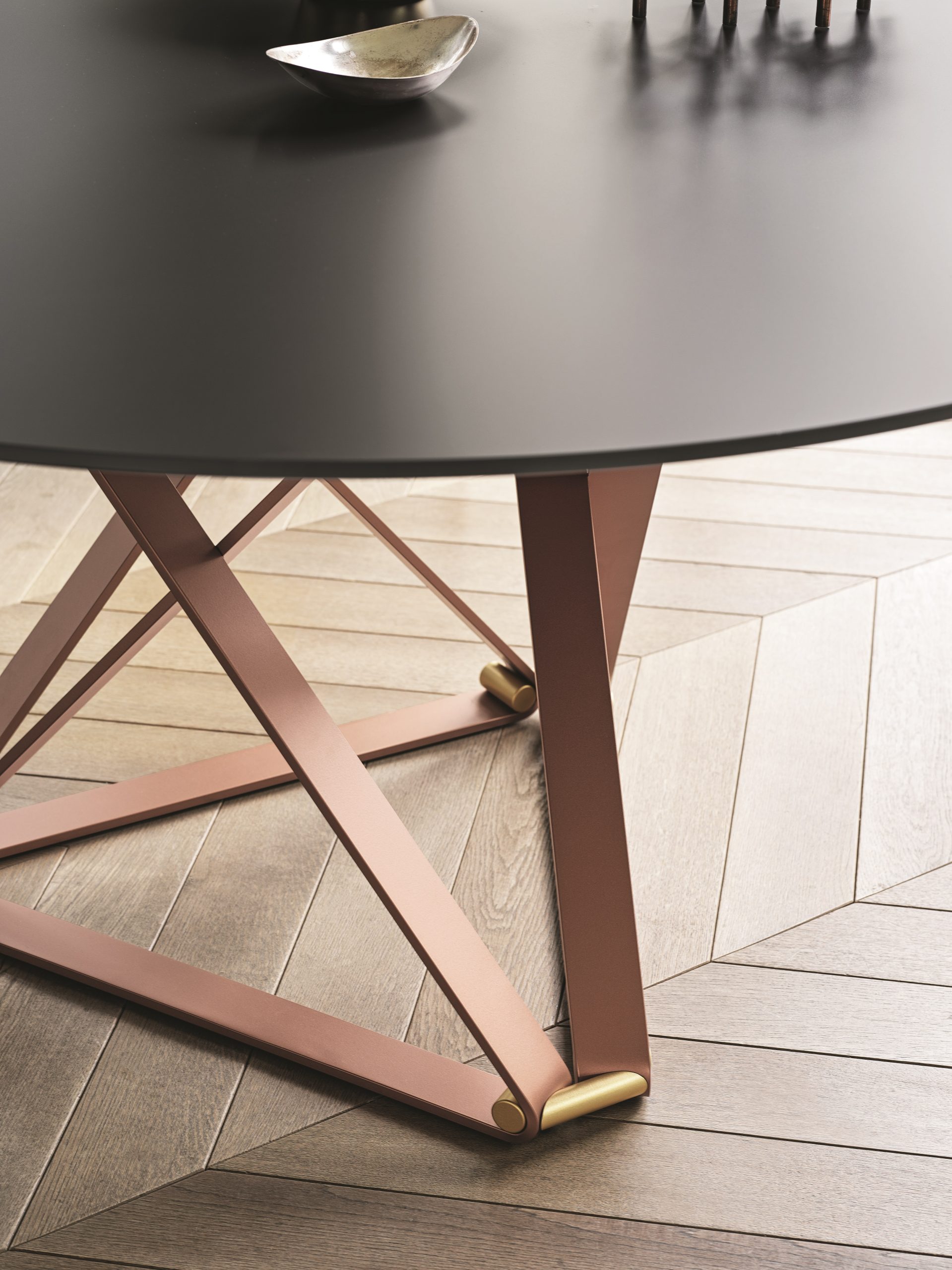 The geometric base features crisscross metal beams and intricate metal decorative details that make this table look like a sculptural work of art. Bontempi tables are synonymous with quality, reliability and variety. Because a hard-wearing, durable table, in line with the furnishing style in which it is placed, is important for the overall harmony of the entire home. Bontempi tables are refined and minimalist in taste, suited to both contemporary homes and more rustic styles. There are also Bontempi extendible glass tables which are the perfect practical and functional solution for the kitchen, as well as being decorative and space-saving. Bontempi convertible tables are, after all, an important item of furniture for anyone who lives or works in small rooms, as they fit into compact spaces and can be extended when needed. Extendible tables, fixed tables, extendible consoles and contract tables available in different formats, such as: rectangular tables, oval tables, square and round tables.