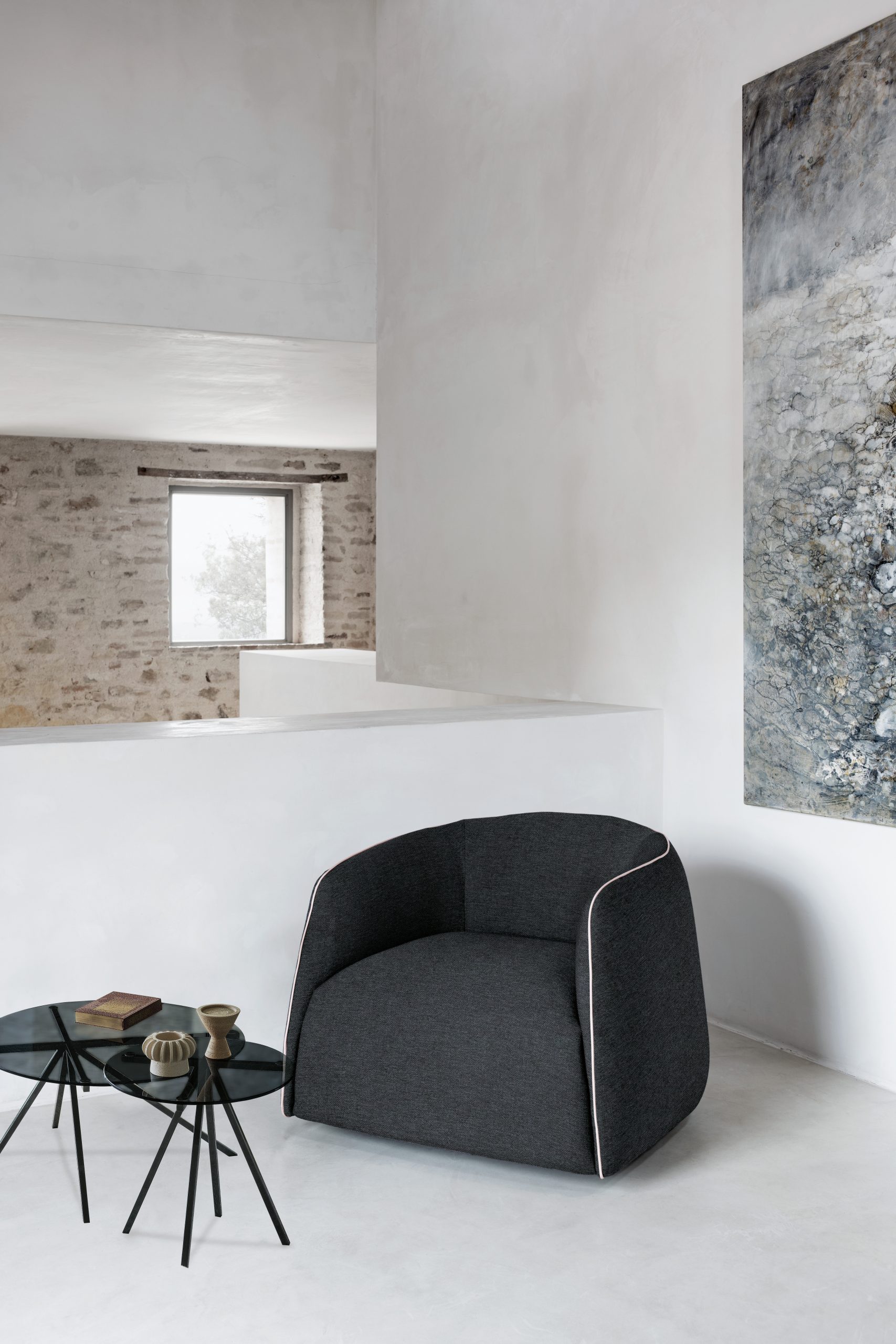 Harmony, discretion, softness, hospitality. There are endless references to describe this armchair designed by a line that follows itself gently, without ever stopping. Enveloping gentle like a hug, it is not a simple armchair but a microcosm of comfort that welcomes and protects after an intense and long day.