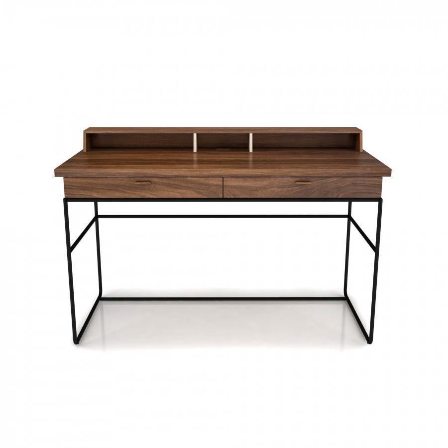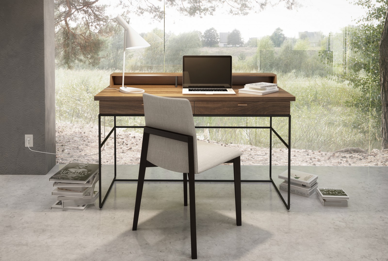 since the backs are fully finished, numerous arrangements are possible. this collection is made from Quartersawn walnut, tubular steel and fabric or leather. the color of the tubular steel can be customized with any micro textured lacQuer and the wood with any walnut stain