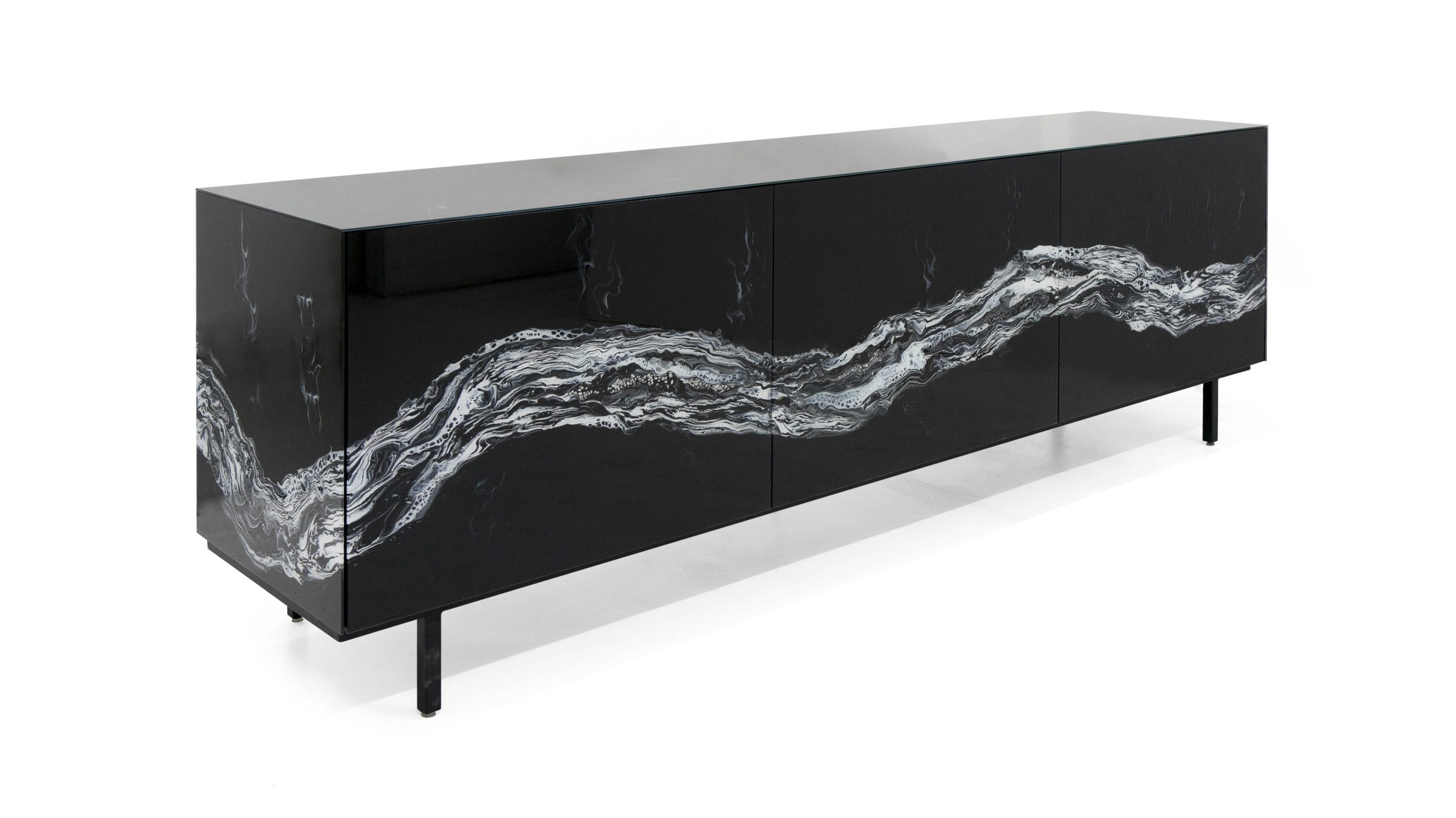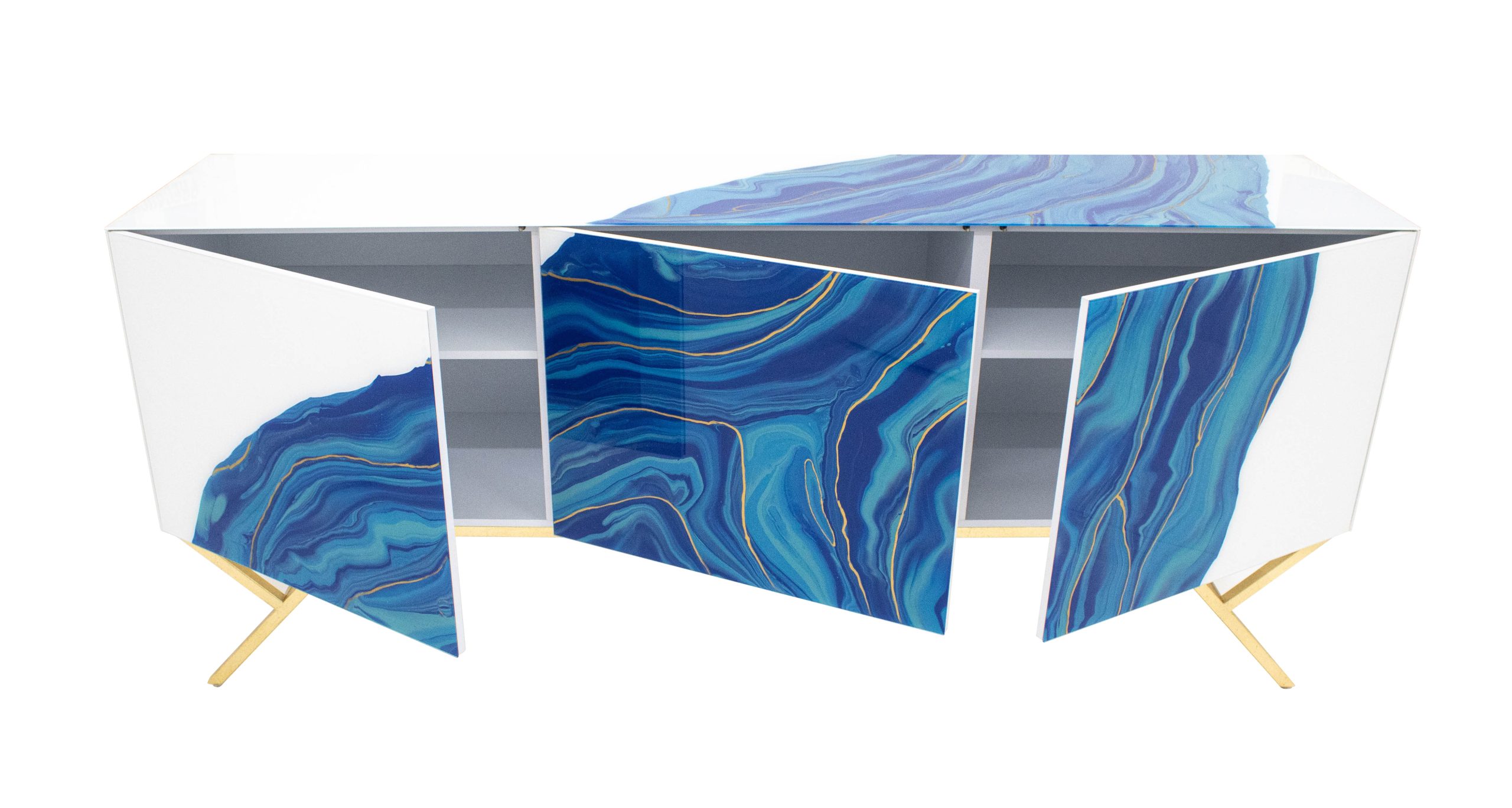 Customize this Glass Art Cabinet to make a statement in your home. Choose from any number of hand painted patterns. Select your favorite base, interior components and customize the size.