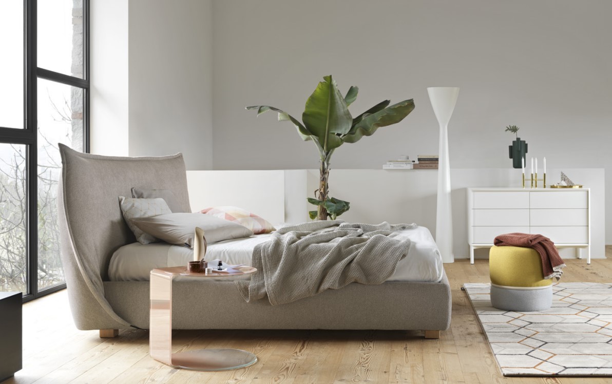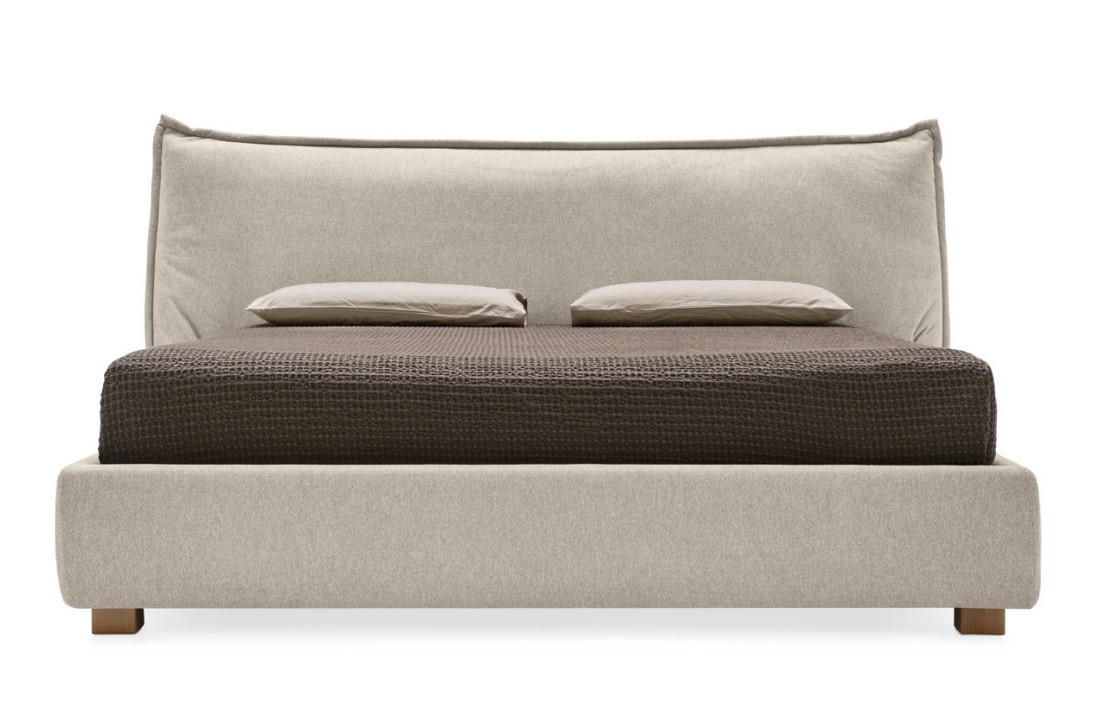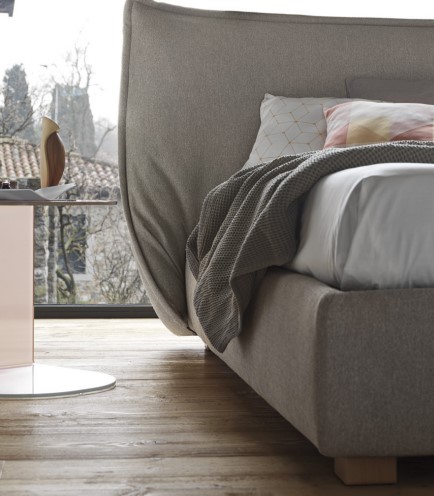 Softly double bed with fully removable fabric cover. The soft comfort of this bed is a pleasure to relax in. A yieldingly soft large padded headboard is the distinguishing feature of the Softly bed which ensures day-to-day lounging without any need to forego elegance.