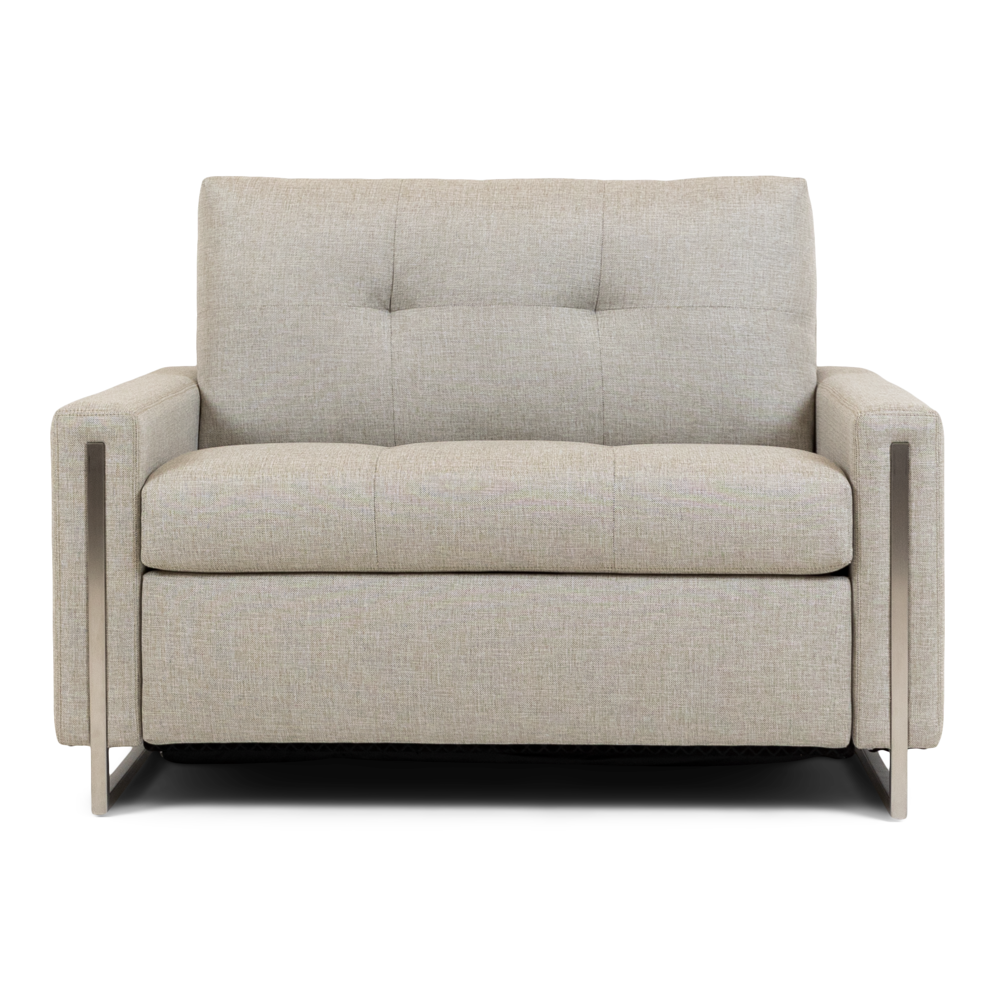 Sulley is a fashion-forward beauty with European flair. Striking metal legs intersect with thin track arms to create a modern masterpiece.