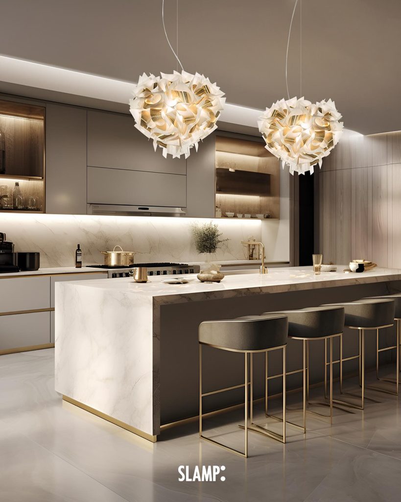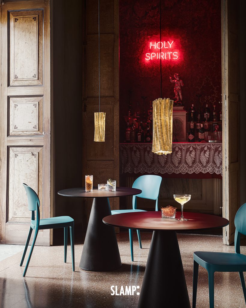 Slamp devotes itself to decorative design lamps, capturing the most current trends, drawing on the natural world, on architectonic, sartorial virtuosity and on artistic developments, transforming them into luminous objects, which are both suggestive and versatile.
